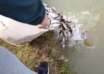 Cette année, l’alevinage a eu lieu le dimanches 9 Mars à 10 heures. Des petites mains ont également aidées au renouvellement de la faune locale !