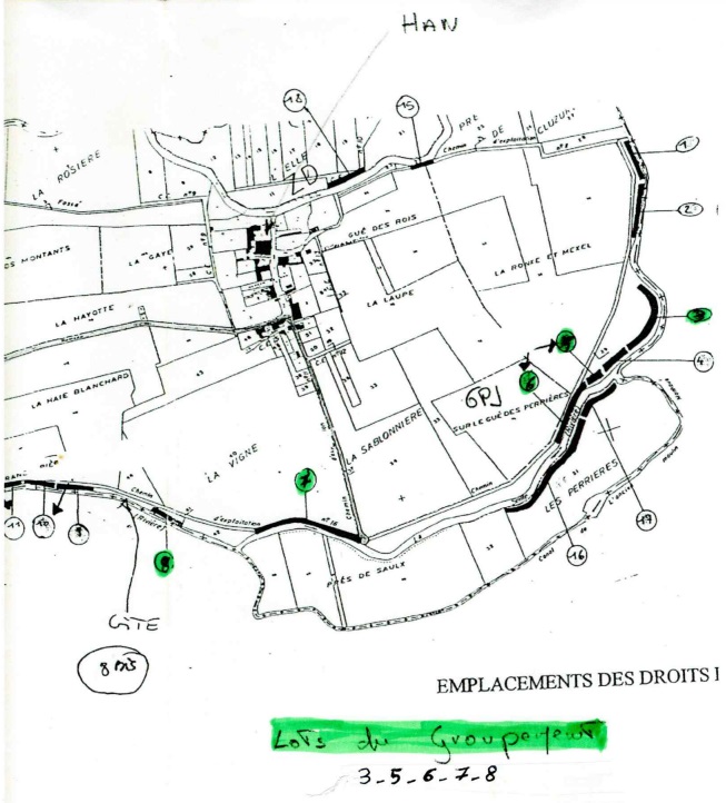 Tous les lots se situent à AJONCOURT. Sur le schéma de droite, vous pouvez voir les lots réservés aux pêcheurs du GPJ en vert (lots 3,5,6,7,8). Cliquez-sur l’image pour l’afficher en PDF